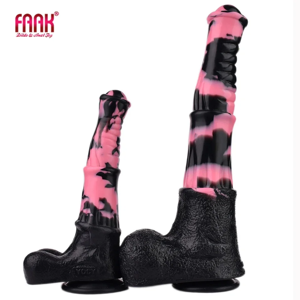FAAK 35 см длинный реалистичный конский фаллоимитатор с присоской большая Анальная пробка силиконовый многоцветный Фэнтезийный пенис женский мастурбатор
