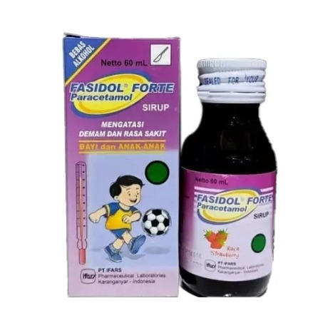 Deskripsi: Fasidol merupakan obat analgesik-antipiretik yang dapat digunakan untuk menurunkan demam, meredakan nyeri seperti sakit gigi dan sakit kepala. | Komposisi: Tiap 5 mL sirup mengandung paracetamol 160 mg | Dosis: Anak 0-1 tahun: 1/2 sendok takar, 3-4 kali perhari.