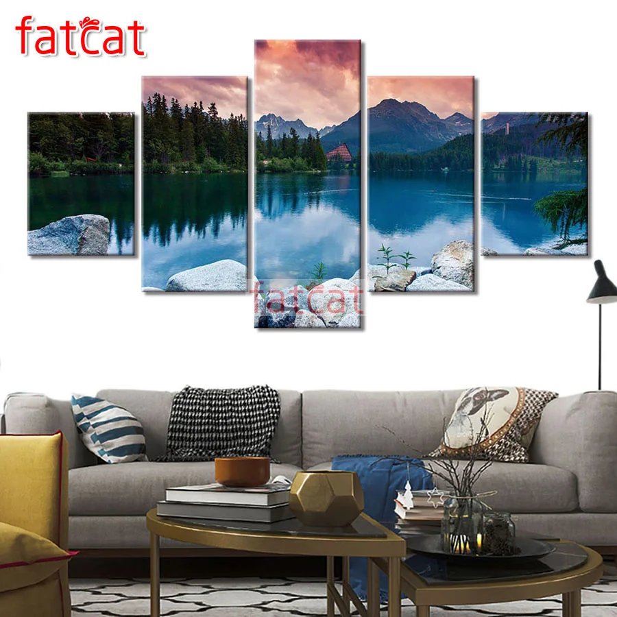FATCAT природные пейзажи озеро 5 шт. Diy алмазная живопись полный квадратный круглый дрель Алмазная мозаика, алмазная вышивка продажи домашнего ...