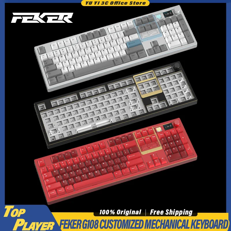 FEKER G108 Wireless Mechanical Keyboard CNC Aluminum Shell Customized Control Knob Display Screen Detachable Modular Design RGB