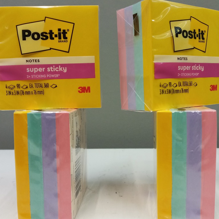 051124 | SP 3M Post It Super Sticky Notes 654-4SS-SWT 3 inch x 3 inch Brand : 3M Post It Ukuran : 3" x 3" (76mm x 76mm) 1 pack isi 4 pad 1 pad isi 90 lembar 1 pack isi 360 lembar • Dapat menempel berulang kali. • Memiliki daya rekat 2X dibandingkan sticky note biasa. • Tersedia dengan lima ragam warna dalam satu kemasan: Sunnyside, Fresh Mint, Orchid Frost dan Positively Pink. • Tidak meninggalkan perekat. • Dapat diakan di berbagai permukaan lain selain kes. • Tetap menempel meskipun ditempel pada permukaan kes yang melengkung. DENGAN MEMBELI PRODUK INI 100% SETUJU DENGAN SYARAT DAN KETENTUAN DIATAS NB : Mohon untuk mengkonfirmasikan atau memberikan feedback apabila barang sudah diterima pembeli. Terima kasih. ~~>>>> Kepuasan pelanggan adalah tujuan utama kami >>>>> Terima Kasih Atas Kunjungan Anda RESELLER & DROPSHIPER WELCOME