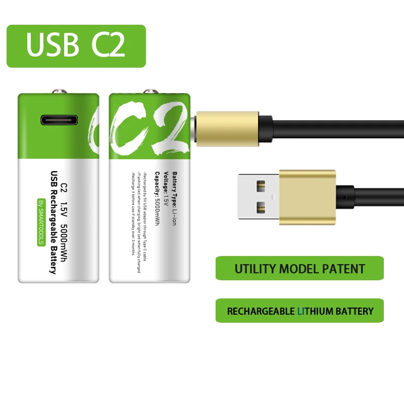 C2 rechargeable battery 1.5V 5000mWh, suitable for non electric water heaters to replace CE furnace polymer batteries