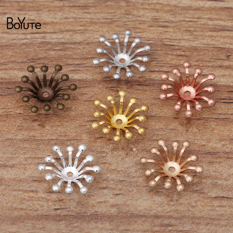 6pcs copper plating 18K real gold wave small flower pair hole circular bead DIY hand made jewelry accessories materials