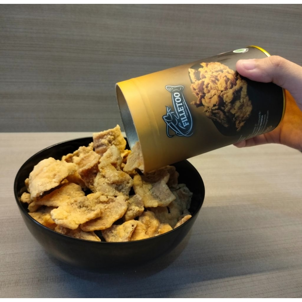 Keripik FILLETOO merupakan hasil olahan ikan lele yg sudah dipisahkan dari bagian kepala,kulit,dan duri. Dipadu dengan bahan bahan pilihan,yg di prosesdan dikemas secara hygienis. Sehingga menghasilkan keripik filet lele yang enak,lezat dan bergizi. FILLETOO telah bersertifikat Halal dari MUI Komposisi : Filet ikan lele, tepung beras, bawang putih, ketumbar, minyak goreng, garam. Berat bersih 50 g