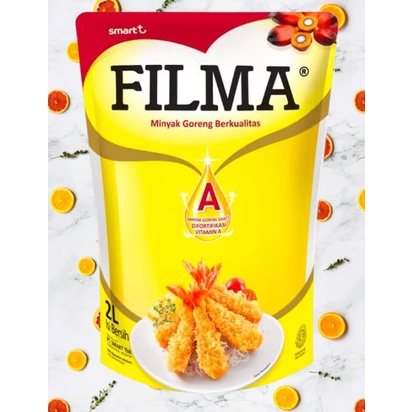 Filma minyak goreng pouch merupakan minyak goreng non kolesterol yang terbuat dari buah sawit segar pilihan, diproduksi dengan sistem pemurnian terintegrasi dan pengawasan mutu ekstra ketat, sehingga menghasilkan minyak goreng yang jernih bernutrisi. Filma minyak goreng mengandung asam lemak tak jenuh yang dapat membantu menjaga kadar kolesterol, Omega 6 & Omega 9 yang merupakan asam lemak esensial yang diperlukan oleh tubuh, Vitamin D yang baik untuk membantu pembentukan dan pemeliharaan tulang, serta Vitamin E sebagai anti oksidan alami. Warna kuning keemasannya berasal dari kandungan Beta Karoten alami (Pro Vitamin A).