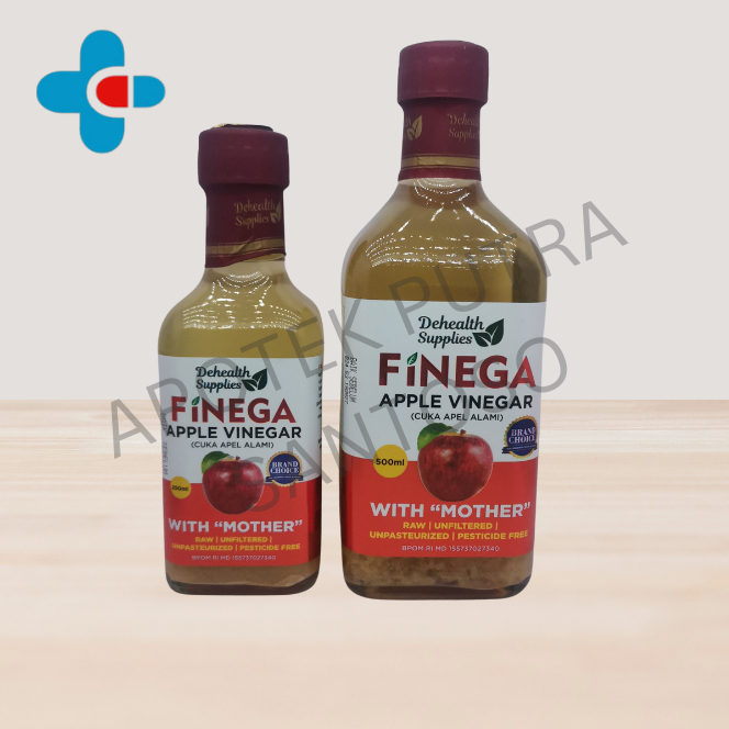 FINEGA CUKA APEL dibuat dari buah pilihan dengan sistem fermentasi alamiah, tanpa menggunakan zat kimia, tanpa menggunakan ragi, tanpa pewarna, tanpa pemanis buatan, tanpa proses pasturisasi, dan masih mengandung ‘mother’ atau yang disebut dengan inang cuka, bakteri probiotik atau enzyme.