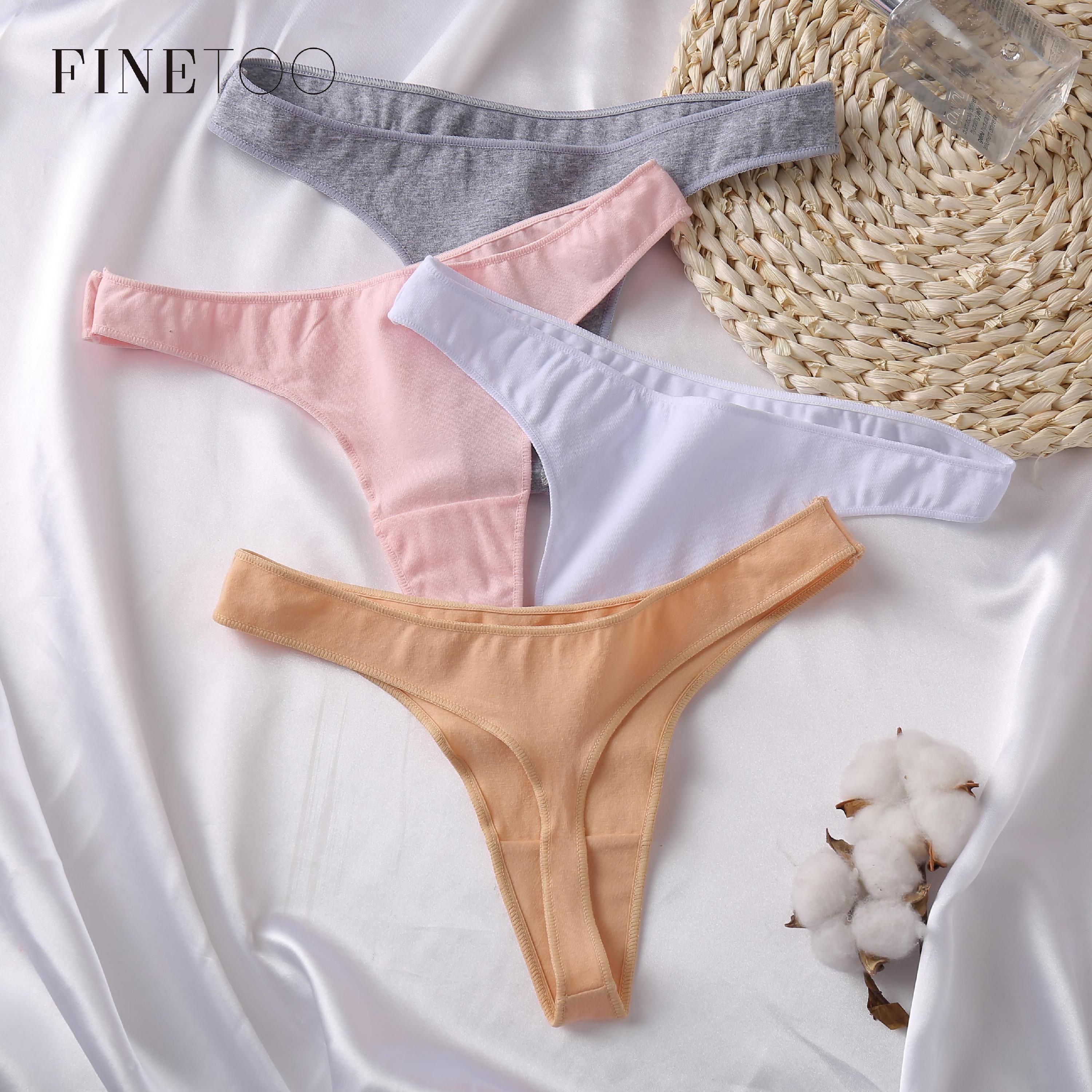 FINETOO Сексуальные стринги Женщины Хлопок T-back Трусы M-XL Дамы G-string Нижнее белье Низкая талия Женские трусики Нижнее белье