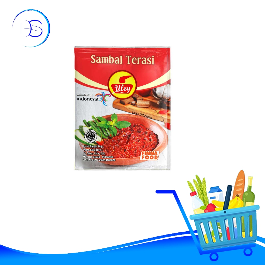 Cabai, gula, minyak nabati, terasi, air, garam, penguat rasa (mononatrium glutamat, patitermodifikasi, penguat kalium sorbat.