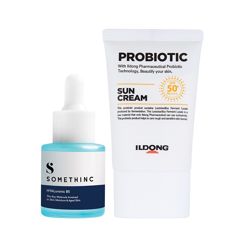 Isi Bundle :FIRST LAB Probiotic Sun Cream SPF50+ PA++++ (50ml)SOMETHINC HYALuronic B5 20mlDeskripsi FIRST LAB Probiotic Sun Cream SPF50+ PA++++ (50ml) :All FIRST LAB's Skincare are using a Patented Probiotic Technology from ILDONG Pharmaceutical Korea.Probiotics can influence the balance & the composition of skin microflora. Through the natural process of fermentation, probiotic bacteria produce acid compounds such as lactic acid that lowers the skin pH. The acid pH prevents the growth of the most harmful bacteria.Function: Strong protection from The Sun's harmful UVA & UVB . This Physical Sunscreen is great for sensitive skin & non sticky at all!Contains Lactobacillus Ferment Lysate(30,000ppm) produced by fermentation of Lactobacillus rhamnosus IDCC 3201.How To Use:Applied the Sun Cream to your Face & Neck at the end of your skincare regimen.Re-Apply at least every 2 hoursFREE MASKER PROBIOTIC 1 PCSNA26191705130Deskripsi SOMETHINC HYALuronic B5 20ml :Molekul utama yang memegang kunci kelembaban kulit, anti kusam, & anti penuaan dini.Memberikan kelembaban maksimal pada kulit, Melembutkan & Mencerahkan kulit yang kusam sehingga wajah tampak glowing, Membuat kulit menjadi kenyal & sehat, & Mencegah produksi sebum/minyak berlebih.For: All Skin TypeNA18200101082