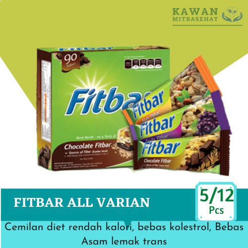 Fitbar adalah snack sehat yang terbuat dari Oat, Quinoa dan Whole Wheat yang merupakan sumber serat. Serta Fitbar bebas dari kolesterol, bebas dari lemak trans, dan memiliki kandungan kalori yang rendah. Jauh lebih rendah dibandingkan snack-snack lainnya.
