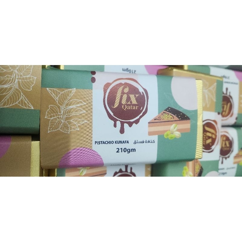 Pistachio Kunafa coklat asli Qatar merk Fix.