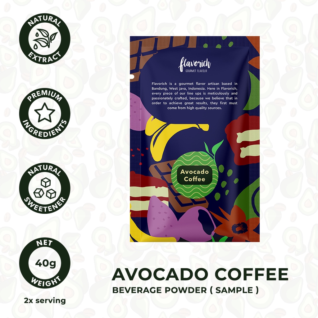 Serbuk minuman yang mengandung ekstrak buah alpukat dan kopi instan.