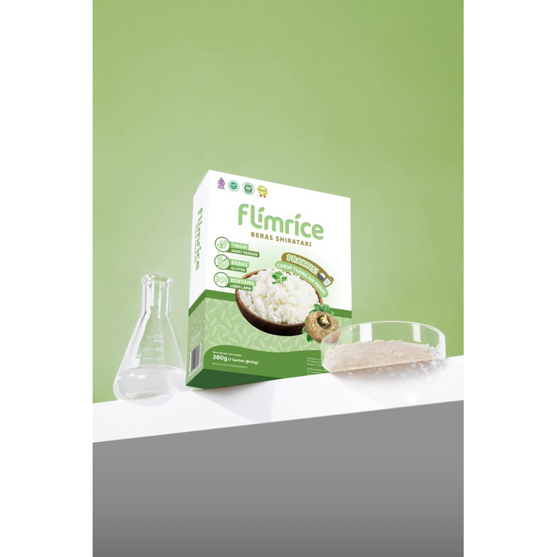 Dengan Flimrice gak perlu khawatir nasi jadi musuh dietmu, karena Flimrice itu berbahan Shirataki, pati jagung, pati singkong, membuat Flimrice lebih rendah kalori dan bikin KENYANG LEBIH LAMA dari nasi putih biasa.