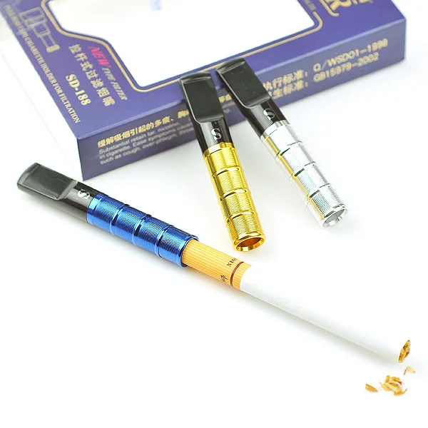 New Reusable Super Cleaning Reduce Tar Smoke Tobacco Filter Cigarette Holder Blue/Gold/Silver SD188