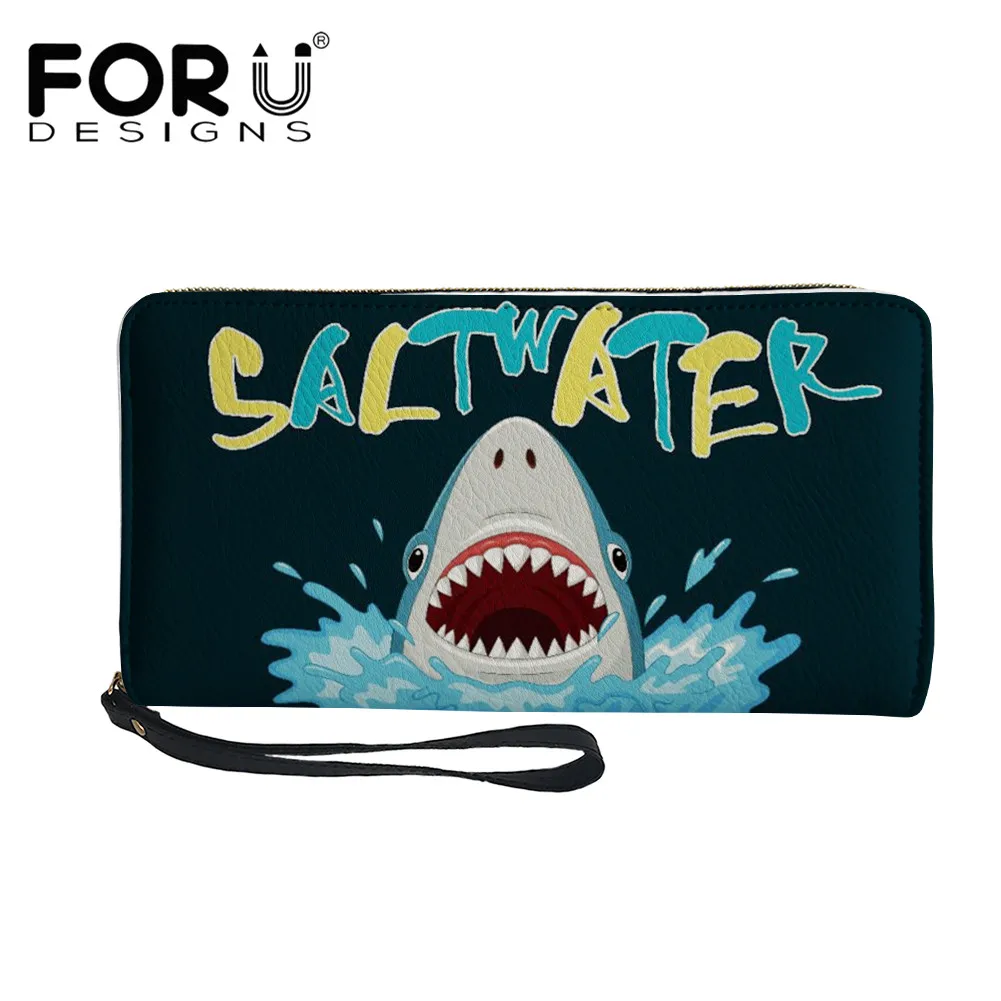 FORUDESIGNS, мультяшный кошелек с милым рисунком акулы, Женский кошелек, сумки для денег, держатель для карт, чехлы для монет, роскошный женский дл...