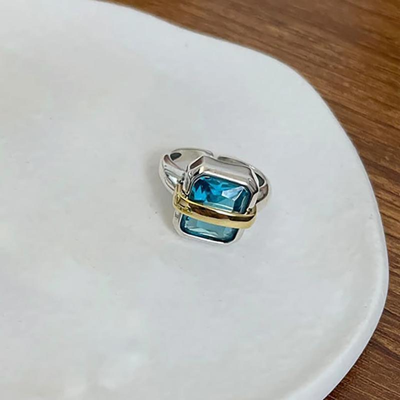 FOXANRY кольцо со штампом для женщин, новая мода, легкий роскошный очаровательный синий кристалл, цепочка на ключицу в стиле панк, вечерние ювелирные изделия, подарки 17mm серебряный