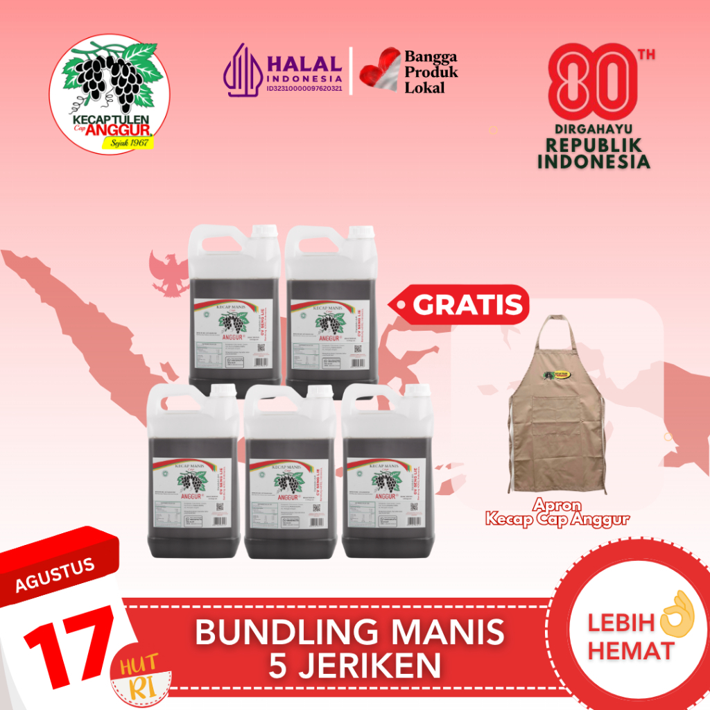 Manis 6kg sebanyak 5 jeriken + free 1 Apron Kecap cap Anggur