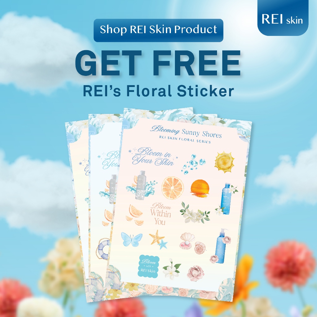 Dapatkan FREE Stiker Floral Edition REI Skin dengan setiap pembelian produk dari REI Skin Floral Series