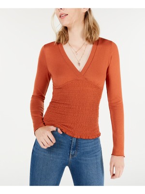 FRESHMAN FOREVER Женский оранжевый топ с длинным рукавом и V-образным вырезом