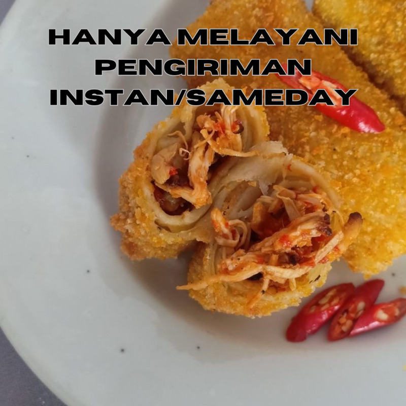 Risol Ayam Pedas isi 5. Cocok dihidangkan untuk cemilan, acara keluarga, arisan, takjil buka puasa, dll.