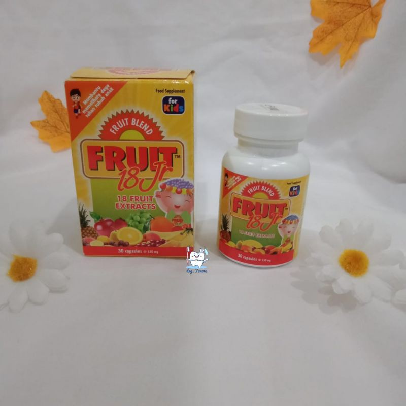 Setiap kapsul Fruit 18 Jr mengandung paduan sari buah-buahan yg diformulasi secara baik, mineral komplek, citrus bioflavonoids, serat buah-buahan dan nutrient alami yg bermanfaat untuk :