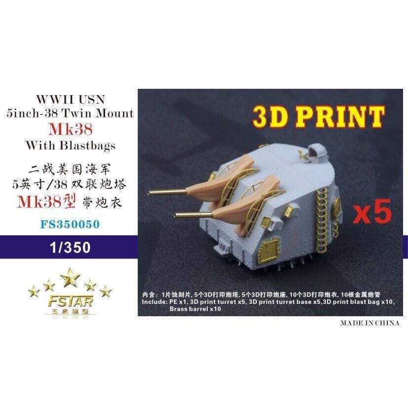 FS350050 1/350 Вторая мировая война ВМС США 5-дюймовая/38 двухорудийная установка Mk38 с брезентовыми чехлами (5 комплект) Пропорциональная игрушечная модель, напечатанная на 3D-принтере