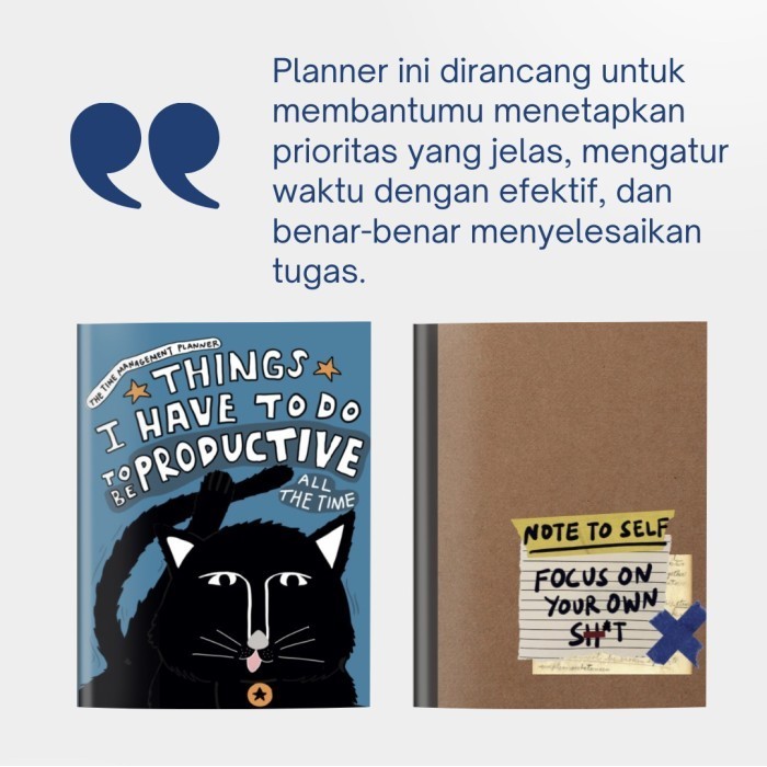 Time Management Journal : planner ini dirancang untuk membantumu menetapkan prioritas yang jelas, mengatur waktu dengan efektif dan benar-benar menyelesaikan tugas.