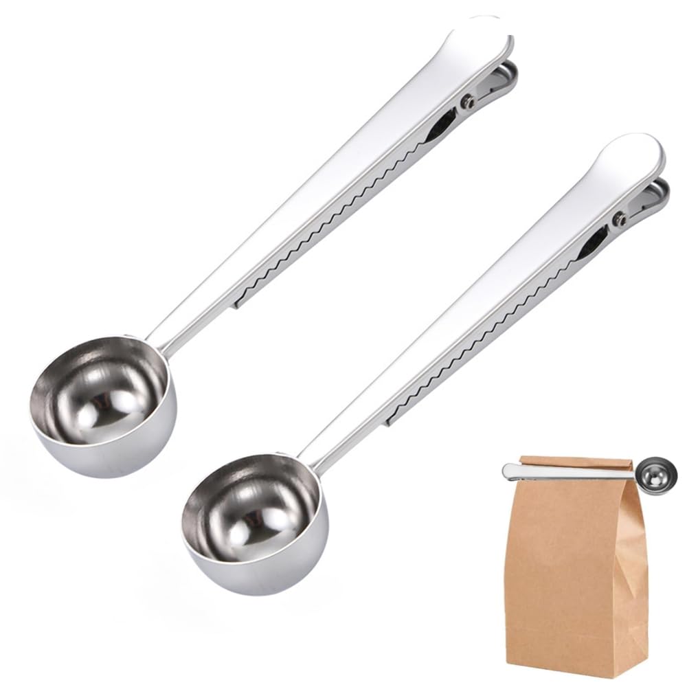FUGSHIYI Кофейная мерная ложка из нержавеющей стали со встроенным зажимом, подходит для сухого молока и набор из 2 ложек, сталь, зажим, длинная, легкая, мерная, протеиновая,