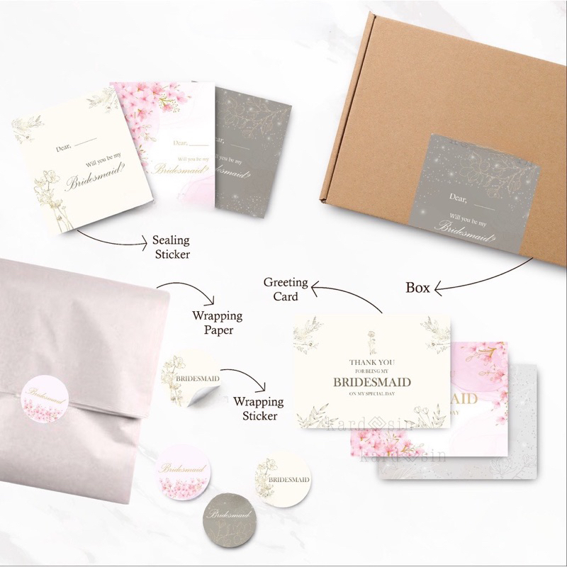 FULL SET Box Bridesmaid with Sticker and Card Bridesmaid