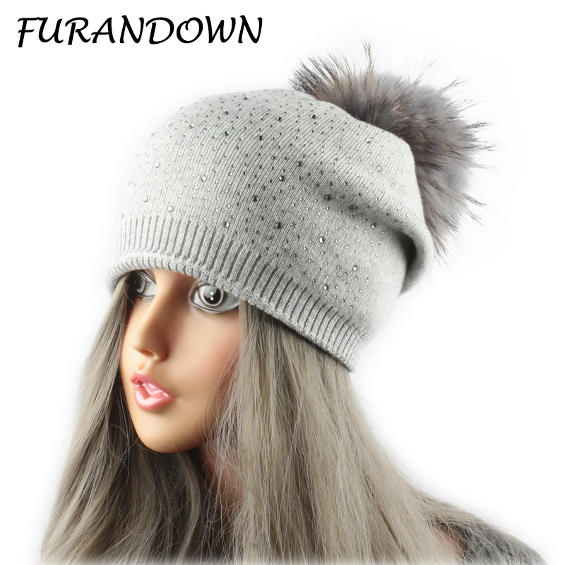 FURANDOWN большие Меховые помпоны зимние шапки для женщин шапки с помпонами