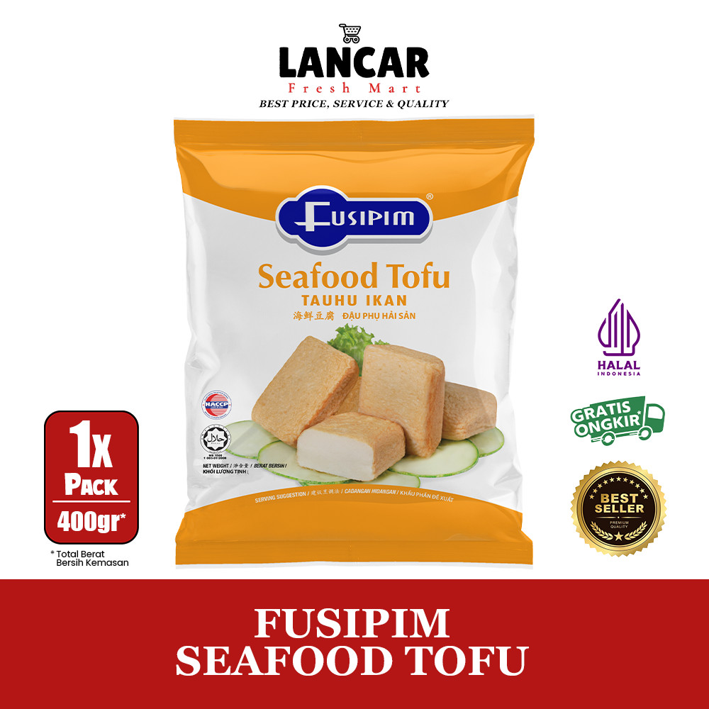 FUSIPIM Seafood Tofu 400gr adalah produk makanan beku berbentuk kotak tahu lembut yang dipadukan dengan olahan seafood seperti ikan dan udang. Teksturnya halus di dalam namun tetap padat di luar, menjadikannya pilihan populer untuk hidangan steamboat, sup, maupun digoreng sebagai camilan.