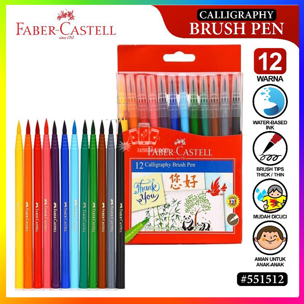 Faber-Castell menghadirkan Calligraphy Brush Pen untuk anda. ( kuas warna-warni) untuk mewarnai, membuat kaligrafi berwarna, dan lain-lain.