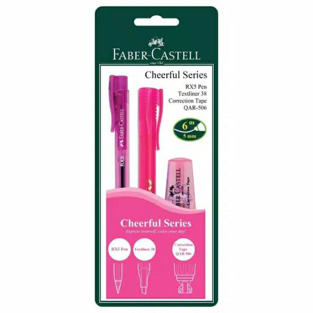 Isi Cheerful Series : (1 pcs RX Pen, 1 pcs Textliner 38, 1 pcs Correction Tape)