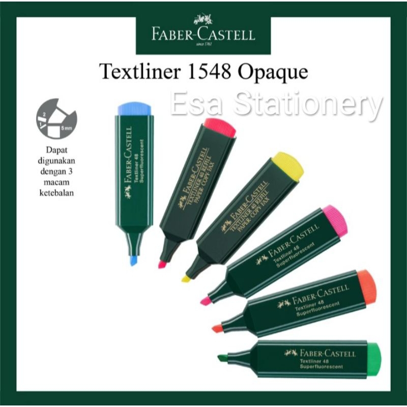 Faber Castell Textliner 48 Refill adalah highlighter berkualitas dari Faber-Castell yang membantu dalam memberi tanda pada hal penting. Textliner ini memberikan warna yang lebih terang dan tahan lama pada kertas. Tinta lebih cepat kering pada permukaan kertas biasa dan kertas fax.