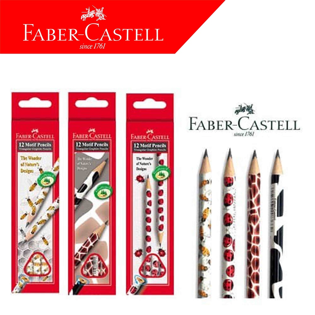 - Triangular menjadikan pensil Faber Castell lebih mudah dipegang dan tidak menggelinding