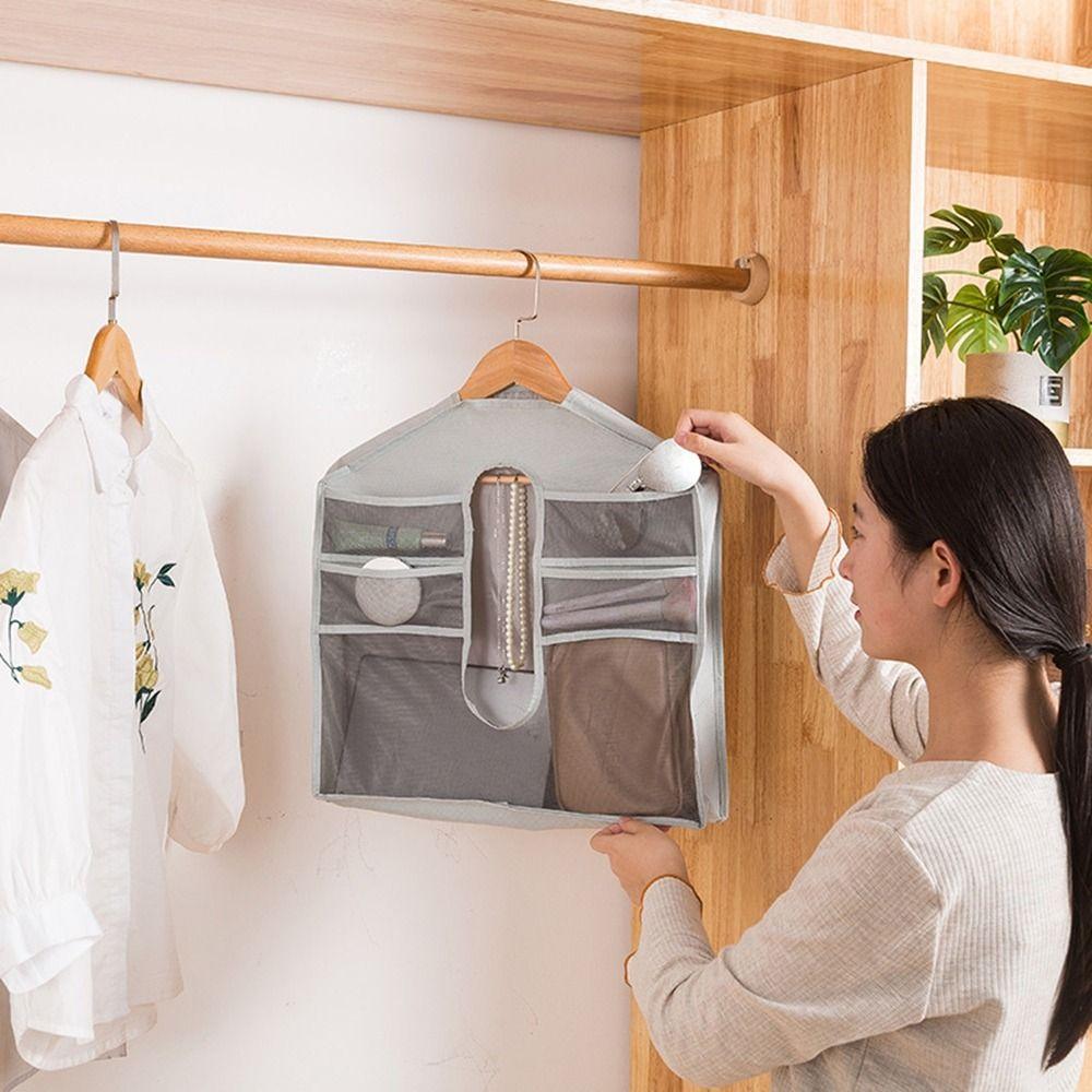 Fabric Closet Hanging Bag Wall Mounted Anti-scratch Socks Storage Hanging Bag Space Saving Sundries Storage Bag Bedroom серый