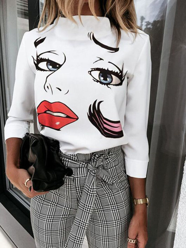 Face Print Small High Neck Loose Long Sleeve Sweater