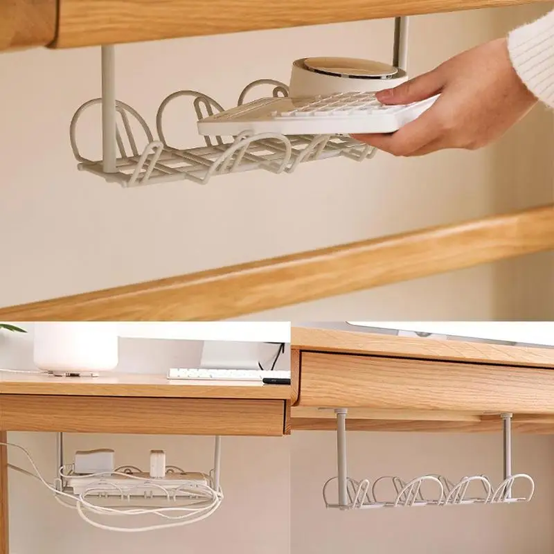 Factory Supply Wholesale Table Bottom Power Cord Plug-in Simple Racks Desk Under The Drag-line Tray Storage Basket Storage Rack