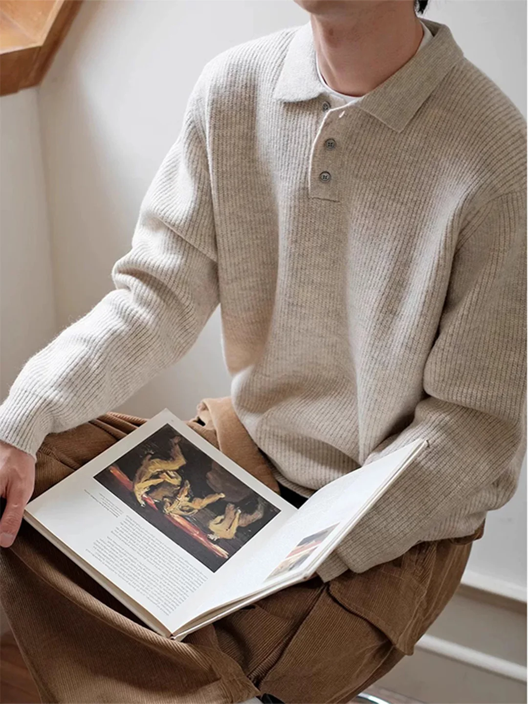 Faionable Ne Knitwear Men's Inner Wear Tee Button Versatile Comfortable Polyester Fiber Winter Regular Fit Long Sl...