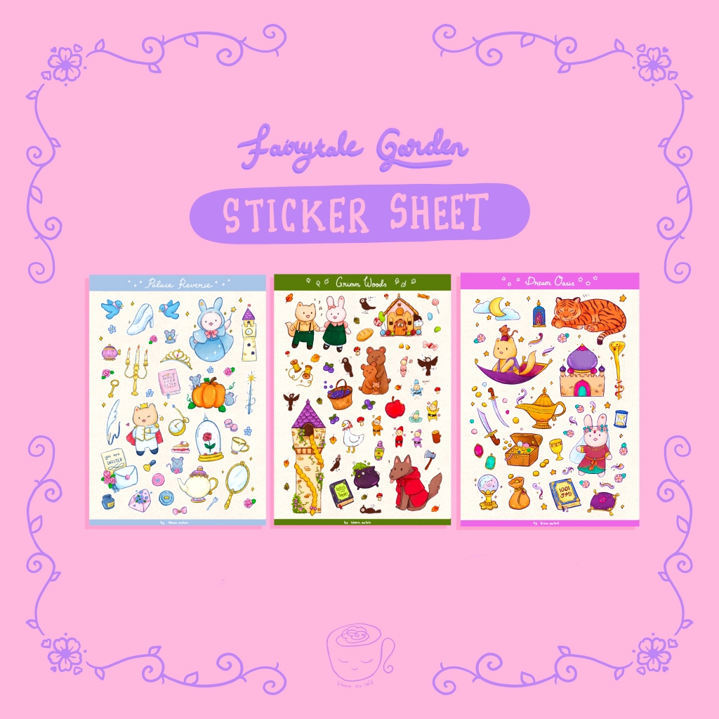a cute and aesthetic stickers sheet with fairytale theme illustration fit for Journaling and Deco!