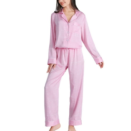 Homgro Women s Soft 2 Piece Pj Satin Pajama Set Spring Lightweight Long Sleeve Button Down Pant Printed Loungewear Set Patterned8 Large