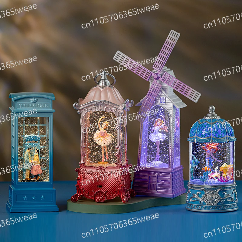 Falling Snowflake Pattern Crystal Ball, Exquisite Advanced Ballet Rotating Music Box,