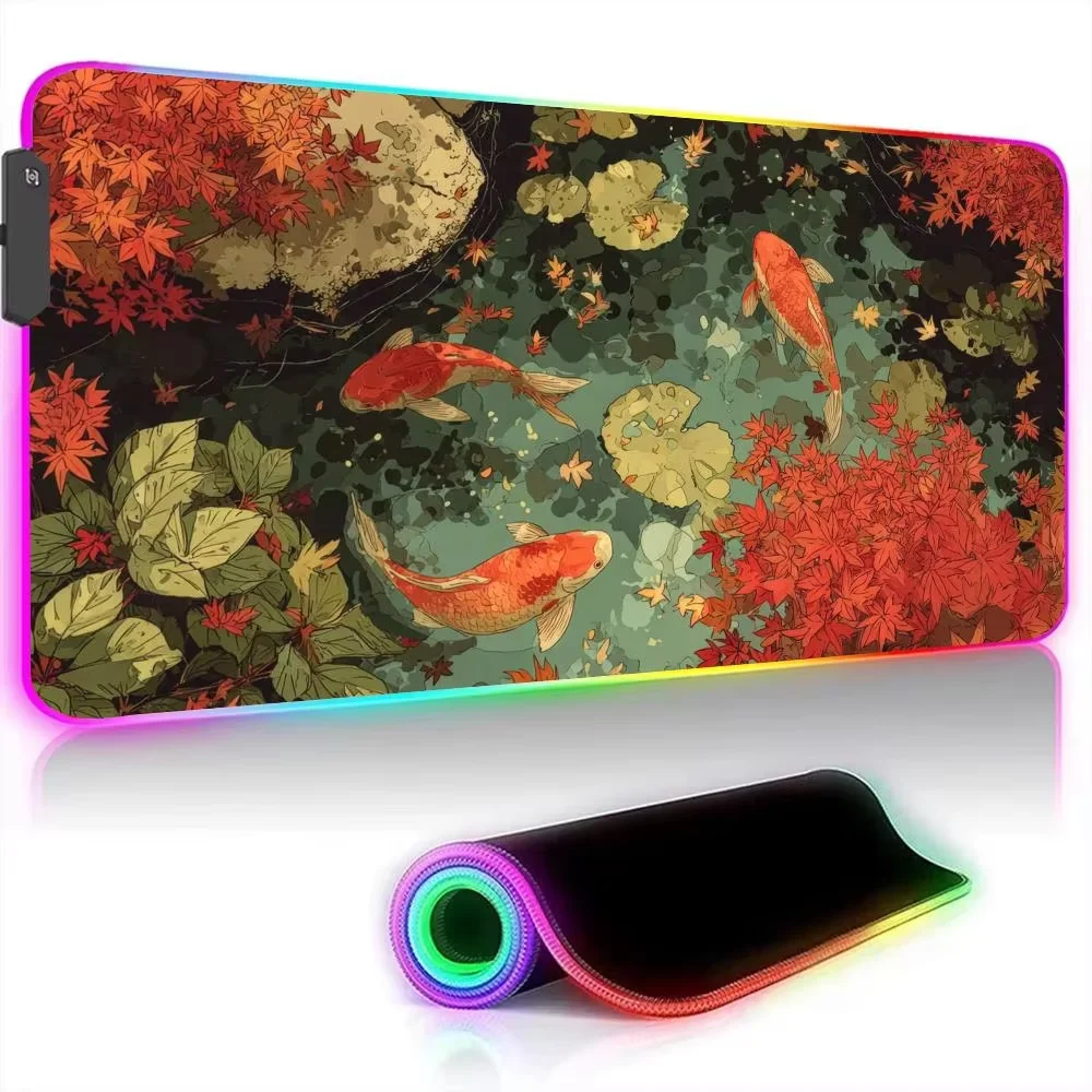 Fantasy Koi Fish Pattern Design RGB Mouse Pad Desk Mat Gaming rug pc accessories Keyboard Extended pad LED glow Gaming mouse pad