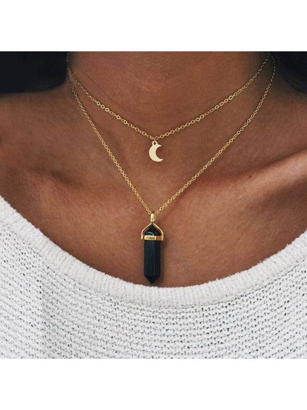necklaces,fashion double moon hexagon column crystal pendant necklace