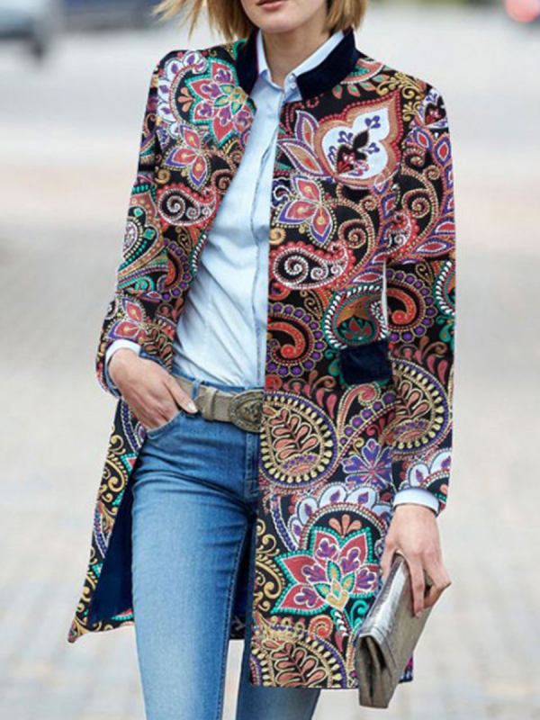 Fashion Floral Pattern Long Sleeve Coat