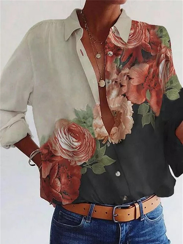 Fashion Floral Stitching Printed Single-breasted Shirt