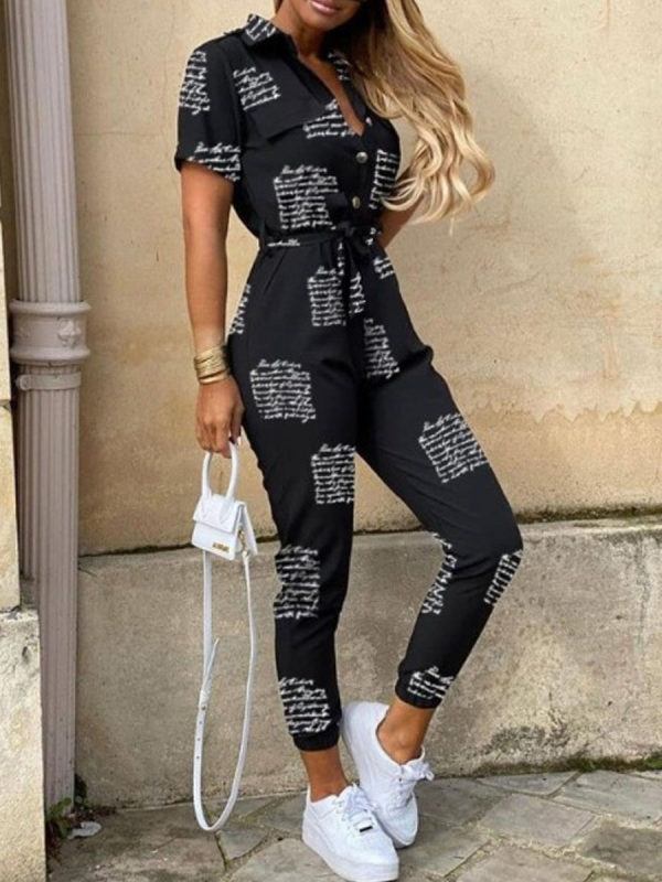 jumpsuits,fashion letter print short sleeve jumpsuit