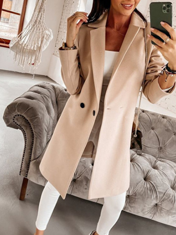 coats,fashion mid-length solid color suit jacket