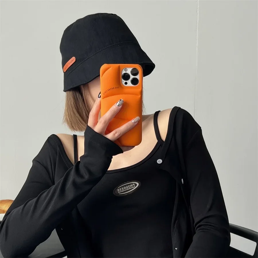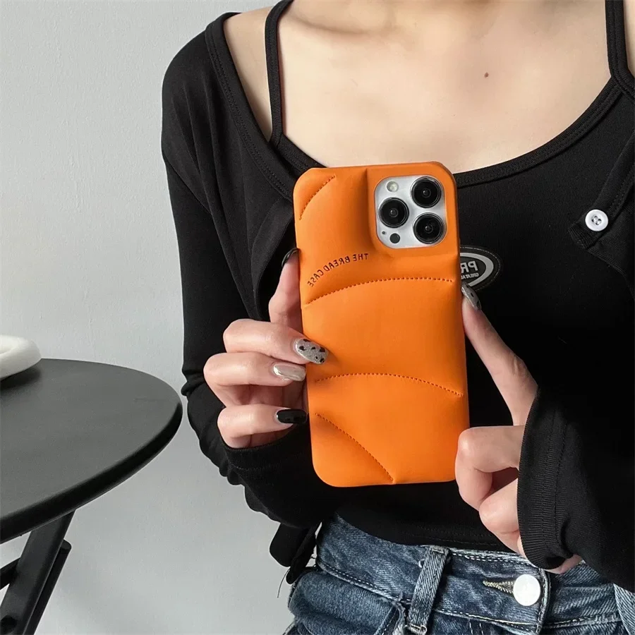Fashion Orange The Bread Case For iPhone 15 14 13 12 Pro Max 14 Plus The Puffer Case Down Jacket Shockproof Phone Cover Case