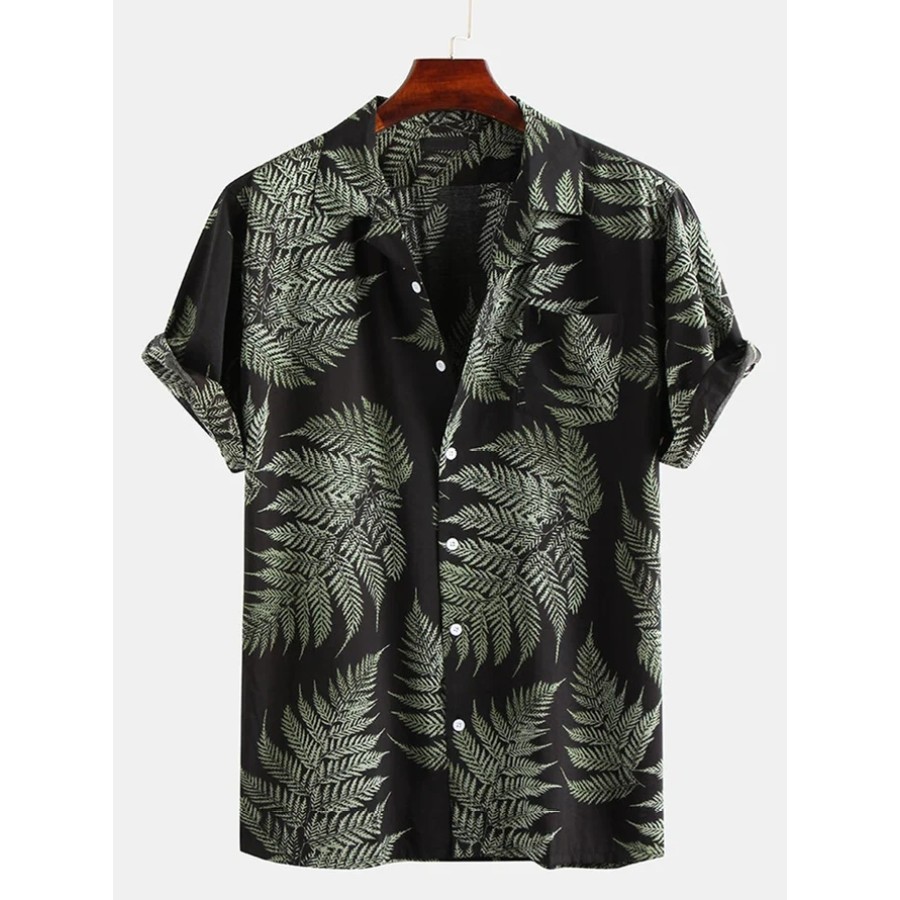 button-downs,fashion printed short-sleeved shirt